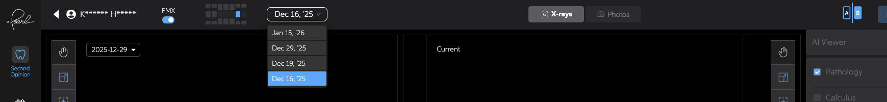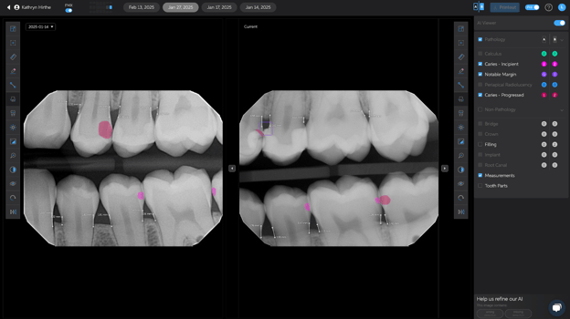 Use the control panel on the right-hand side to enable or disable AI pathologies on both images.