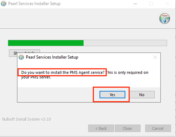 - Next, you will see a prompt asking to install the PMS Agent services.