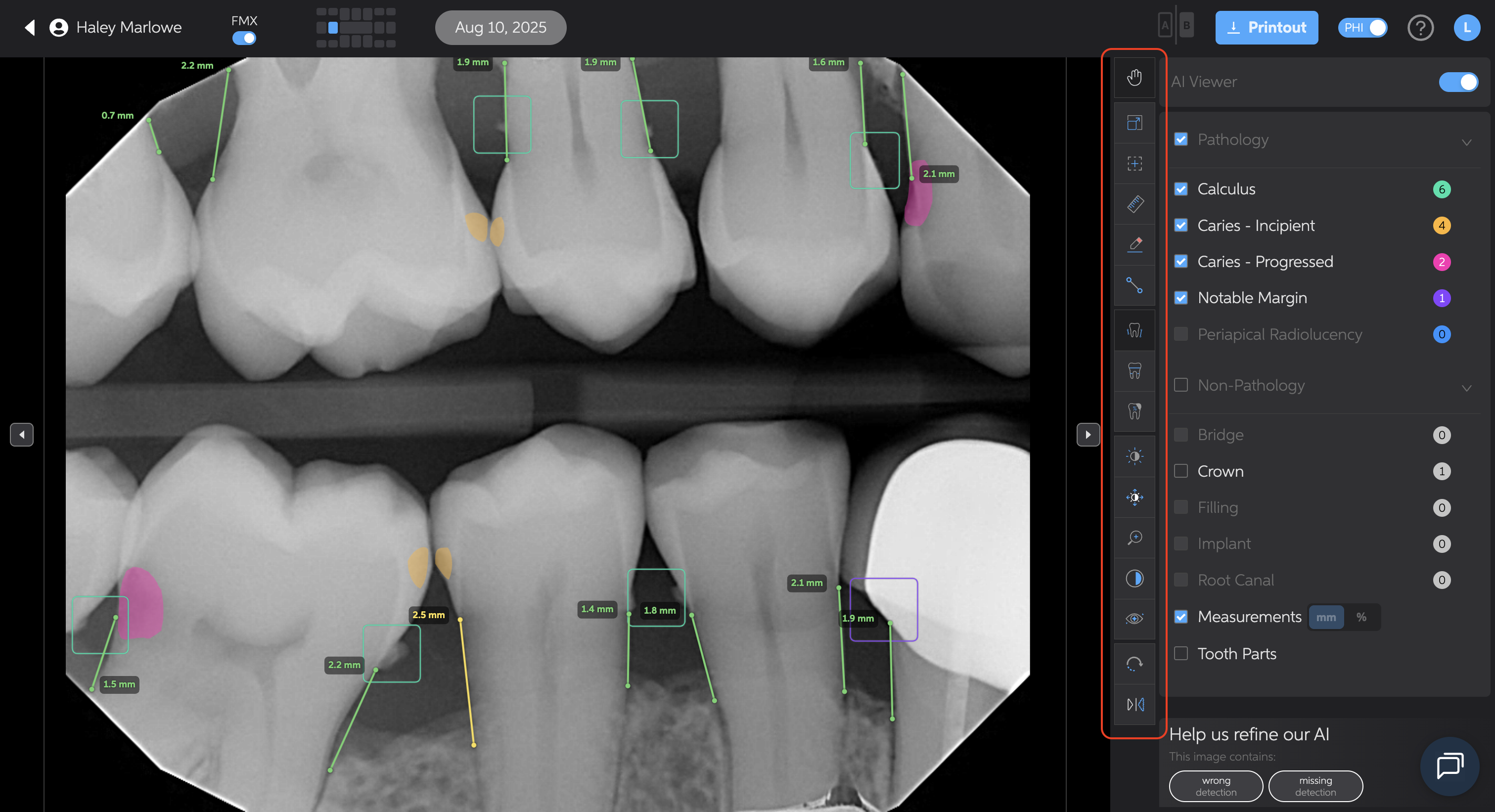 The Pearl toolbar offers a variety of tools for viewing, manipulating, and adjusting images to support both clinical assessments and patient communication. This guide walks you through the key toolbar functions and how to use them effectively.